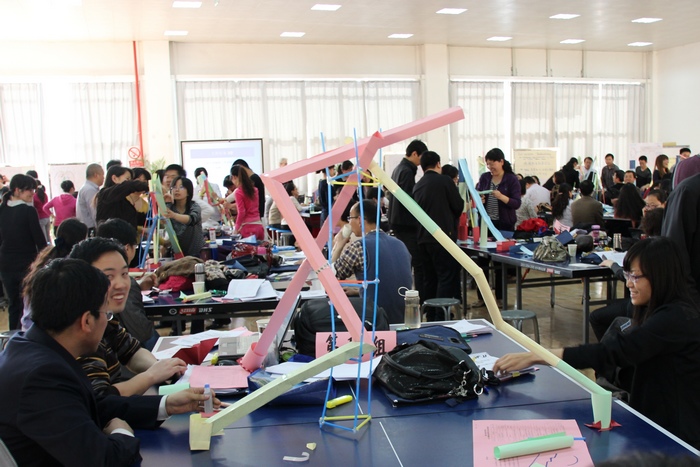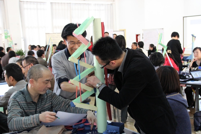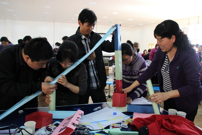 4月15日,“德国职业教育教学法”培训进行至第4天,也是最后一天,胡格教授带领大家学习了卡片复习法、行动导向(任务)之小组拼图法等教学方法,并给学员们布置了“计划建造一个Kugelbahn之小球滑道制作”的工作任务。学员们在胡格教授生动有趣的讲解带动下,愉快地体验着各种新颖的教学方法与教学理念,并综合运用学到的知识、发挥各自专长,积极动手制作属于本组的小球滑道。