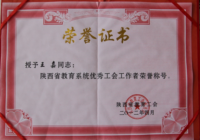 王嘉同志获“优秀工会工作者”荣誉称号
