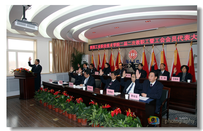 邓志辉同志就贯彻落实好本次会议精神强调了四点意见:第一,在解放思想中统一思想,在更新观念中形成共识;第二,切实发挥“双代会”职能,大力推进民主政治建设;第三,进一步加强和改进工会工作,团结和动员广大教职工积极投身学院发展第四,同心同德、荣辱与共,携手开创陕西工院美好未来。