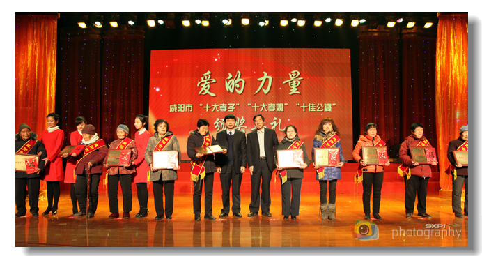 1月6日下午,咸阳市“十大孝子、十大孝媳、十佳公婆”颁奖典礼在我院明德堂举行,市委书记千军昌,市委副书记、市长姜锋,市人大常委会副主任寇述政,副市长车建营,市政协副主席曾广中等为“十大孝子”、“十大孝媳”、“十佳公婆” 颁奖,市委常委、宣传部长唐利如讲话。我院党委书记邓志辉应邀出席典礼。