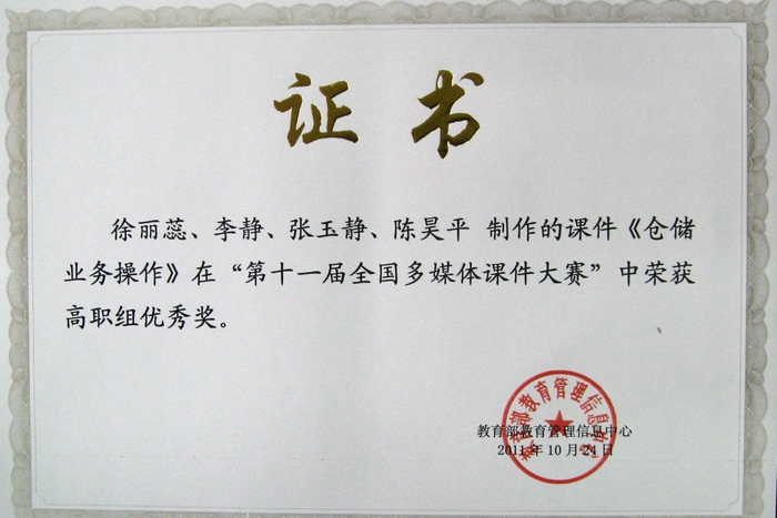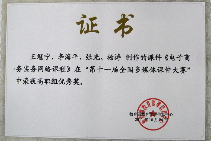 日前,由教育部主办、教育部教育管理信息中心承办的第十一届(2011年)全国多媒体课件大赛在京举行,包括北大、清华在内的400多所高校的1700个多媒体课件参加了决赛,我院三件参赛作品获奖。其中,教务处方树峰老师的《Flash动画设计与制作》、物流管理学院王冠宁等老师的《电子商务实务》(网络课程)及物流管理学院徐丽蕊等老师的《仓储业务操作》(网络课程)获大赛高职组优秀奖。此外,我院数控工程学院刘保朝老师的《机械工程测试技术》与物流管理学院颜伟老师的《网络营销》获得省级课件大赛优秀奖。