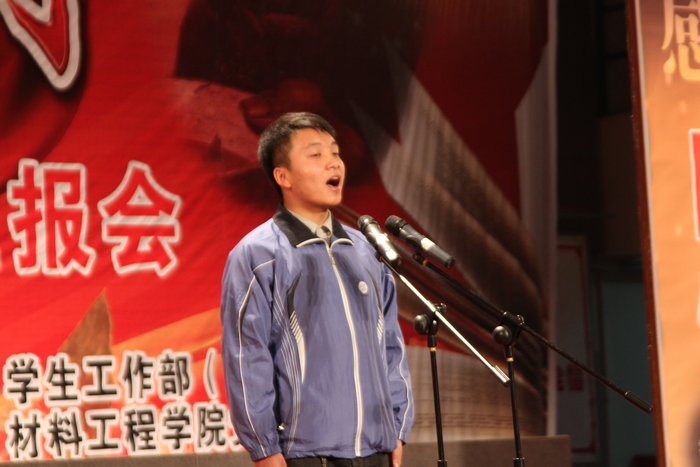 12月6日下午,学工部主办,材料工程学院党总支承办的“大学生思想政治工作系列活动之五 ——《感恩·成才》优秀主题班会汇报会”在明德大礼堂隆重举行。党委副书记王天哲和学工部、宣传部、思政部负责人,各二级学院党总支书记、学工办主任、辅导员、班主任及1000余名学生代表参加了汇报会。
