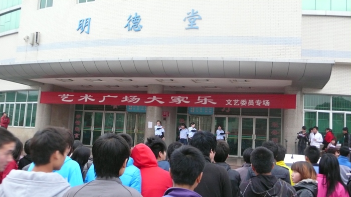 11月16日下午,明德堂前人潮涌动,歌声飞扬,由我院学生处艺术教育中心、大学生艺术团主办的“艺术广场——大家乐”活动在这个充满寒意的冬日温暖上演。