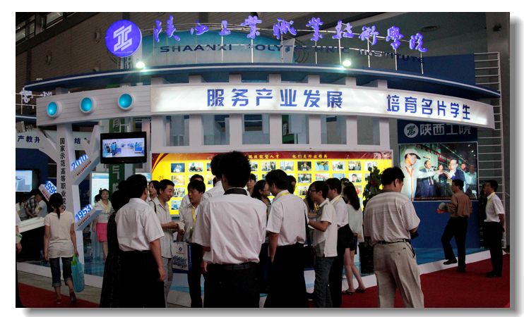 据悉,展会期间,国内外100多所高校的1000多个展位免费开放,其中我院展厅主题突出、特色鲜明,一组组数据、一幅幅展板,一件件实物,见证着陕西工院教育跨越式发展的足迹,吸引了社会各界参展人员、考生及家长驻足交流。