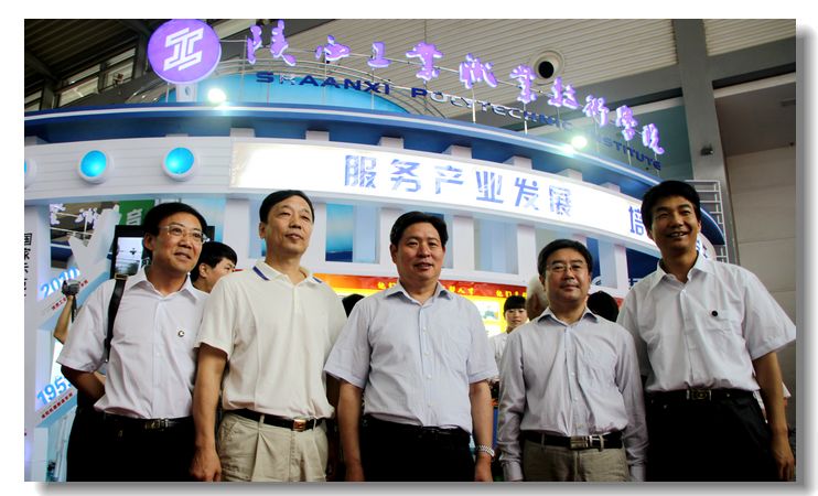 陕西省教育厅厅长杨希文、教育工委副书记郝利生、教育厅副厅长郭立宏莅临我院展厅参观交流,党委书记邓志辉、院长崔岩详细介绍了我院的招生就业及学生创新创意情况,杨希文厅长对我院近年来发挥的示范性作用予以高度认可,并推荐前来咨询的考生及家长报考我院。
