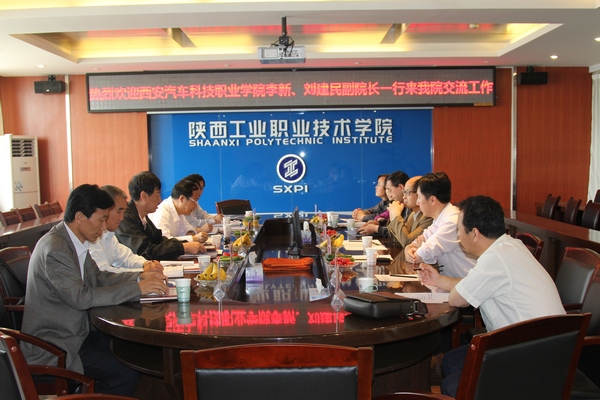 王晓江副院长首先代表学院对客人的到来表示热烈欢迎,随后详细介绍了我院职教集团建设情况,李新副院长对我院的热情接待表示感谢,并介绍了西安汽车科技职业学院教学科研、校企合作等情况。随后,双方重点就职教集团建设、科研工作、学生工作、教学管理及双师型教师的培养等方面进行了深入交流。