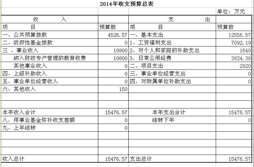 根据部门预算编制要求,预算总收支中不包含财政专项拨款、学生国家奖助学金,离退休拨款、生均拨款及专项拨款等。