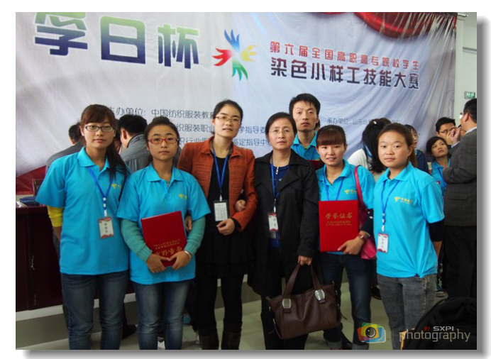 10月18日至20日,“孚日杯”第六届全国高职高专院校学生染色小样工大赛在山东淄博举行,我院化工与纺织学院染整专业的5名同学与全国21所高职高专院校的101名选手参加了比赛。其中,染整1101班郑婧同学获得二等奖、杜康哲、张水英同学获得三等奖、景晓燕和肖慧同学获得优秀奖,卢寅获得优秀指导教师奖。