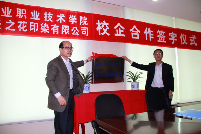 施亚斐董事长对我院考察人员的到来表示热烈的欢迎。他介绍说,南通东盛之花印染有限公司是我国家印染的龙头企业之一,企业目标定位瞄准国内外高端市场,拥有国内最先进的设备和生产技术,主要生产真丝、天丝及纯棉家纺产品的染色和印花,企业的快速发展和技术更新急需一批高素质的技能型人才充实到企业技术和管理岗位,因此希望与我院建立学生就业实习基地、制定订单培养计划、设立企业奖学金。施亚斐董事长表示将为来企业连续工作的优秀学生报销学费等,并鼓励我院染整技术、纺织品检验与贸易、新型纺织机电技术、应用化工技术等专业学生到东盛之花实习或工作。