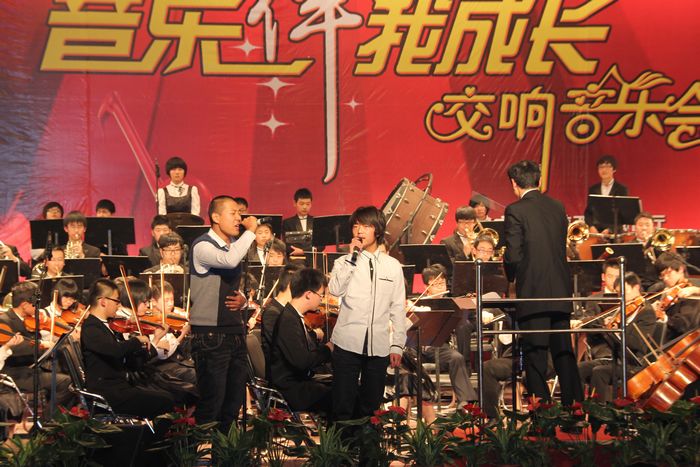 我院学生冯业博、邢路和西安铁一中学同学们合作演出《菊花台》