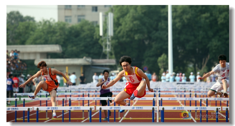 堪比刘翔 腾空一跃 发令枪响 争先恐后 终点就在前方 你追我赶 飞 巾帼豪杰 全力一掷 瞄准,发射 看我一投 胜利者的喜悦 友谊第一,比赛第二 同学,加油! 同学,加油! (王伟)