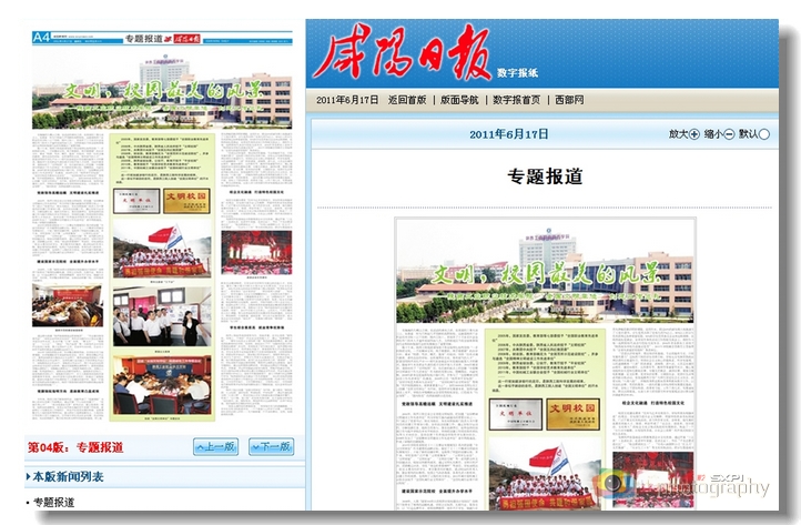 近日,《咸阳日报》专版聚焦我院精神文明建设,以《文明,校园最美的风景》为题,图文并茂地展示了我院“全国文明单位”创建工作。