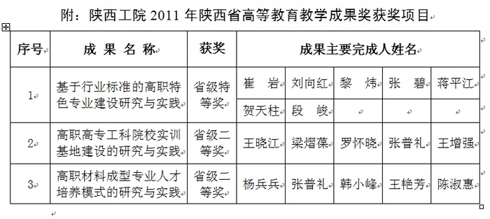 近日,2011年陕西省高等教育教学成果奖评审活动结束,我院申报的三项教学成果分别喜获特等奖一项,二等奖两项。