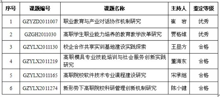 近日,接中国高等职业技术教育研究会通知,我院6项研究课题顺利通过结题验收。