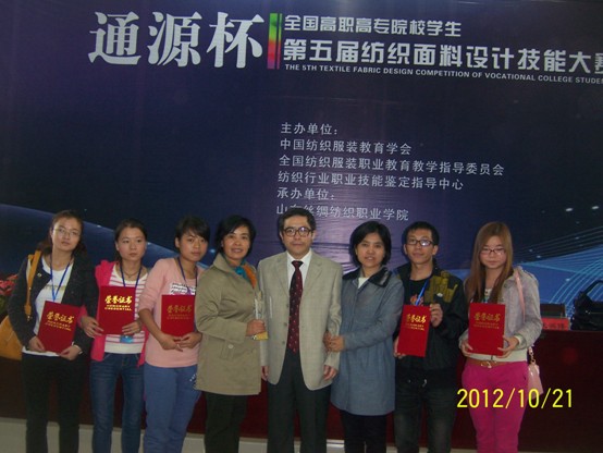 10月19至10月21日,“第五届全国高职高专院校学生纺织面料设计技能大赛”在山东丝绸纺织职业学院举办,我院五名参赛学生全部获奖,获得了3个二等奖、1个三等奖,1个优秀奖和团体二等奖的好成绩。